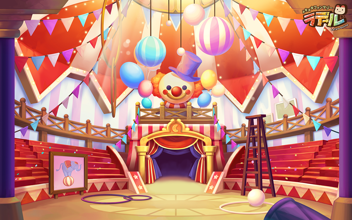 | 新規ダンジョン②:ネクターサーカス場 もう1つの舞台は、なんとサーカス場! ラシュエット街に、大陸での興行を終えた超有名サーカス団がとある「団員」と共にやってくるんだって! グラスタンはすでに期待感で浮足立っているみたい。 |